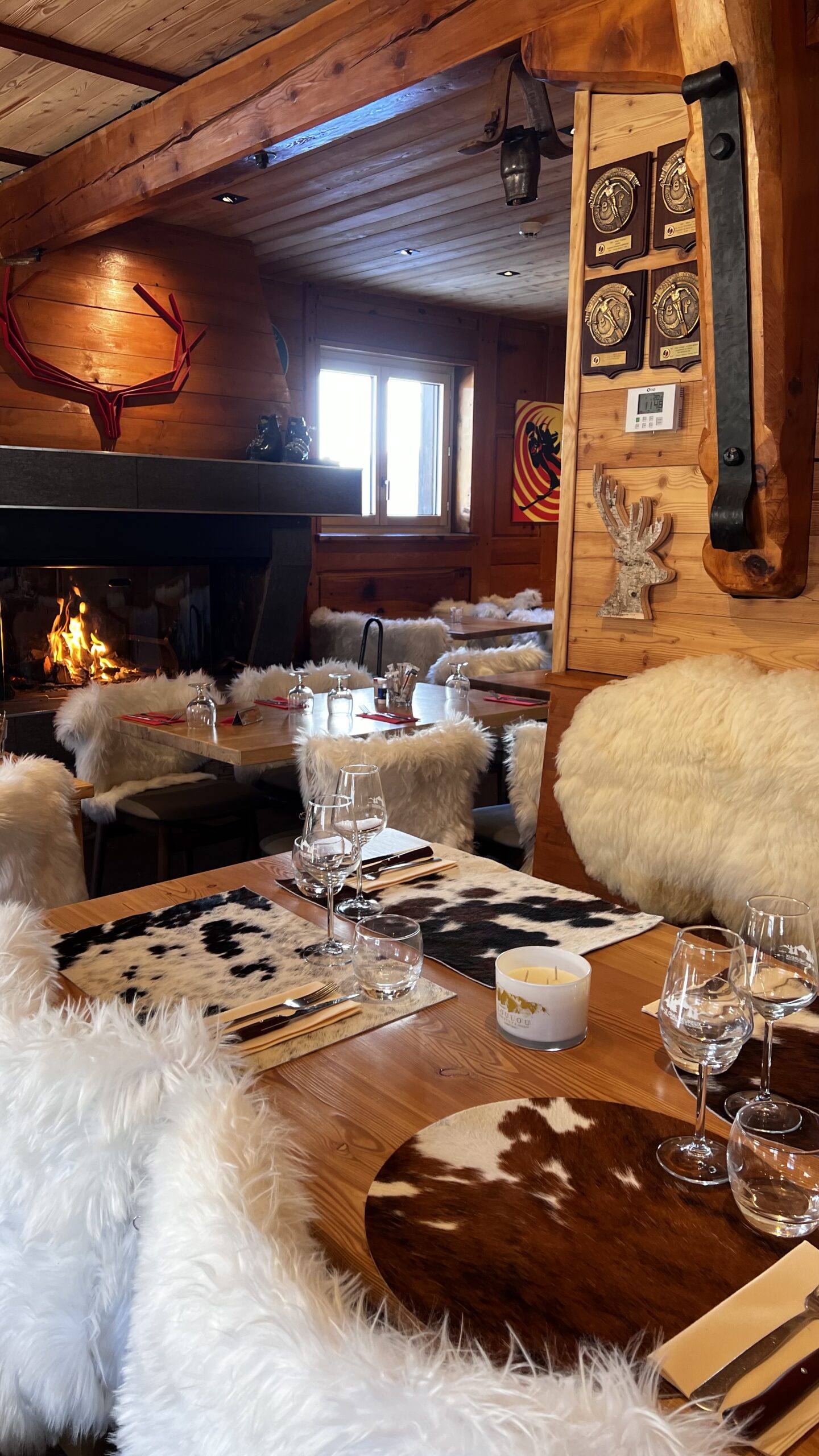 Le soir, le chalet se transforme en un écrin de gourmandise, pour un dîner au coin du feu qui crépite dans la cheminée dans une ambiance douce et chaleureuse.