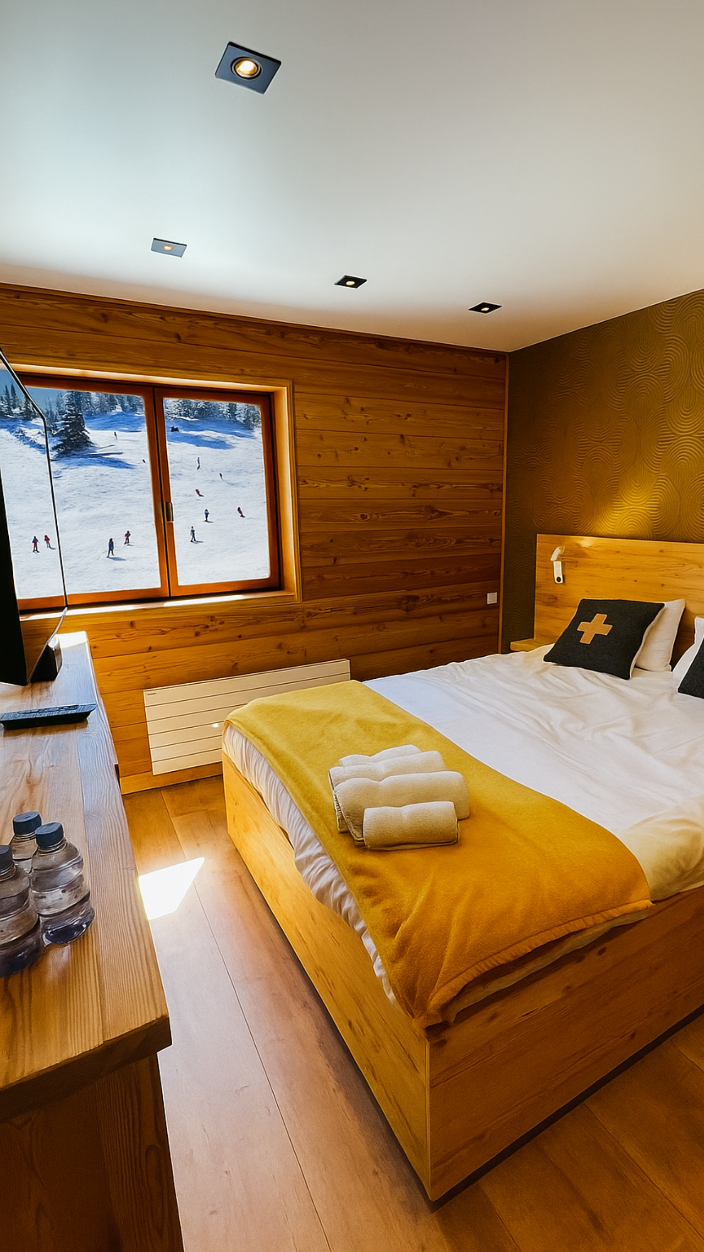 . Au cœur du domaine skiable lové entre les mélèzes vous serez dans un cadre inoubliable et plein de magie, dans une décoration cosy montagnarde et cocooning.